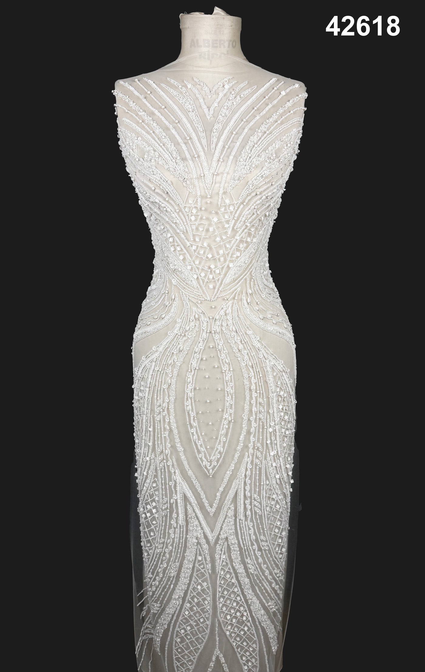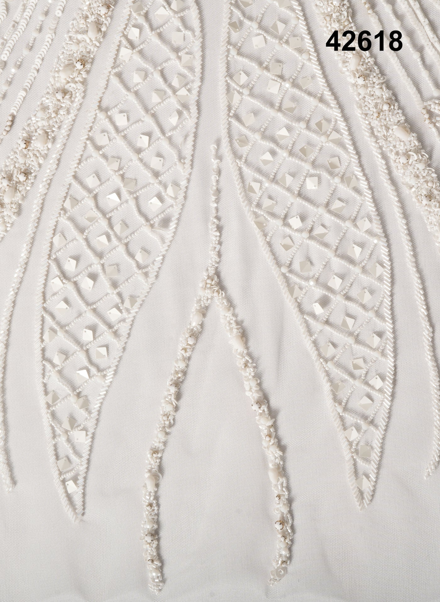 Customization options for embellishment density, motif placement, pattern scaling, and multicolor tone variations are available upon request, making it ideal for luxury designers and couture fashion houses.