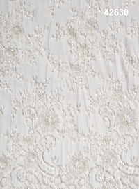 #42630 Imperial Pearl Scroll Beaded Bridal Net Fabric – Luxury Couture Statement