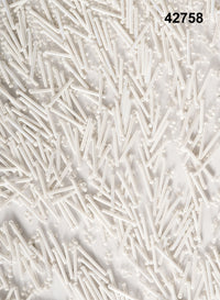Perfect for statement bridal gowns, reception dresses, evening couture, red-carpet ensembles, and structured silhouettes, this fabric delivers exceptional visual impact and runway-inspired sophistication. Its heavily embellished surface makes it ideal for designs that celebrate bold glamour and artistic craftsmanship.