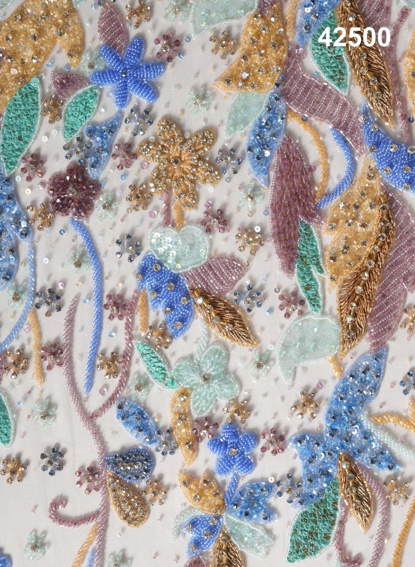 #42500 Multicolor Botanical Hand-Beaded Fabric – Luxury Textile for Couture, Eveningwear & Bespoke Creations