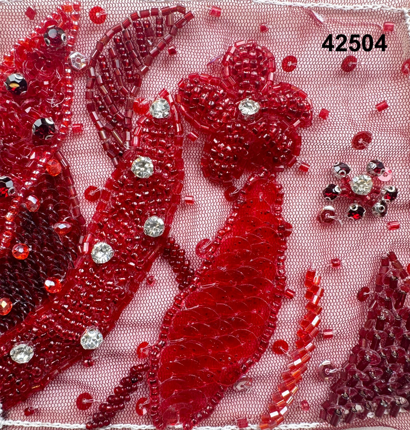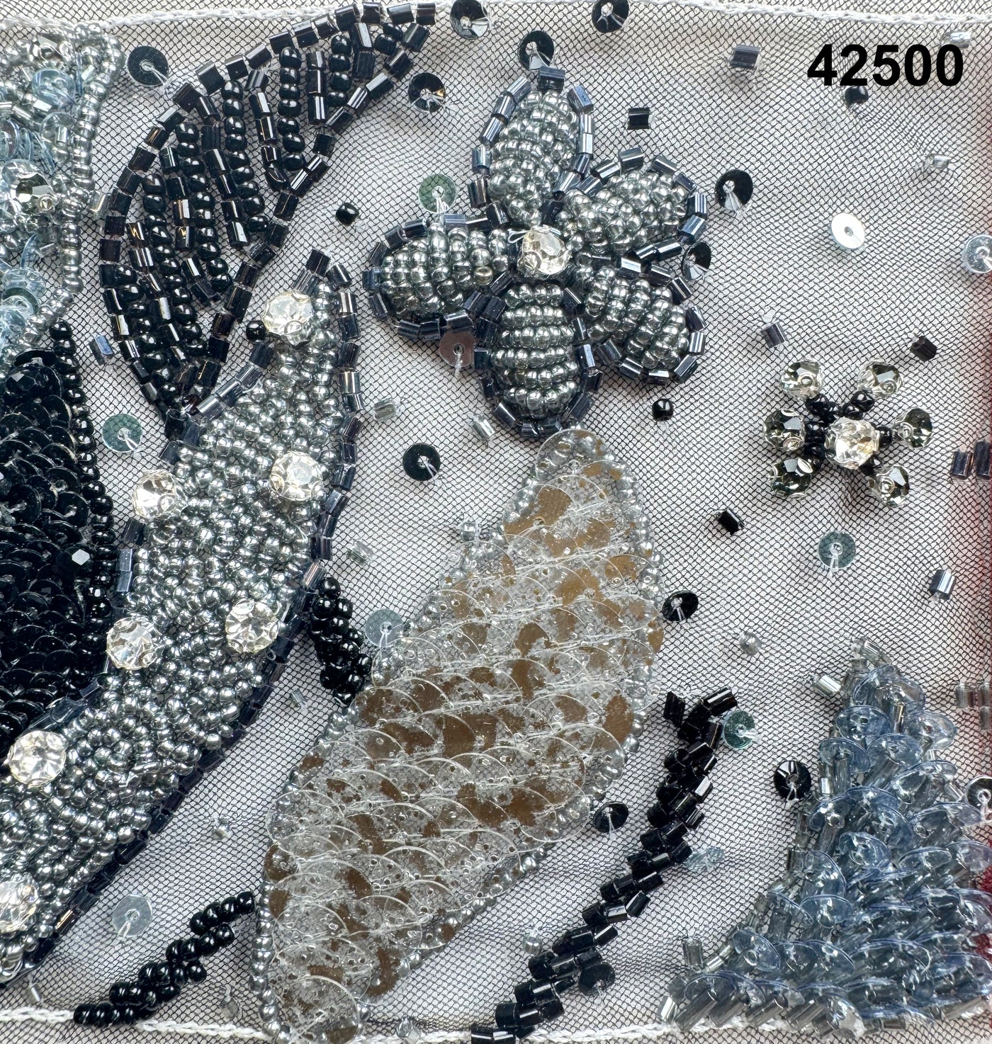 This fabric can be ordered in the colour combination shown or customised to suit your design vision. Base fabric shade, multicolor bead tones, and motif density can be adjusted from our available palette. For bespoke colourways, beadwork variations, or pattern customisation, please contact us on WhatsApp.