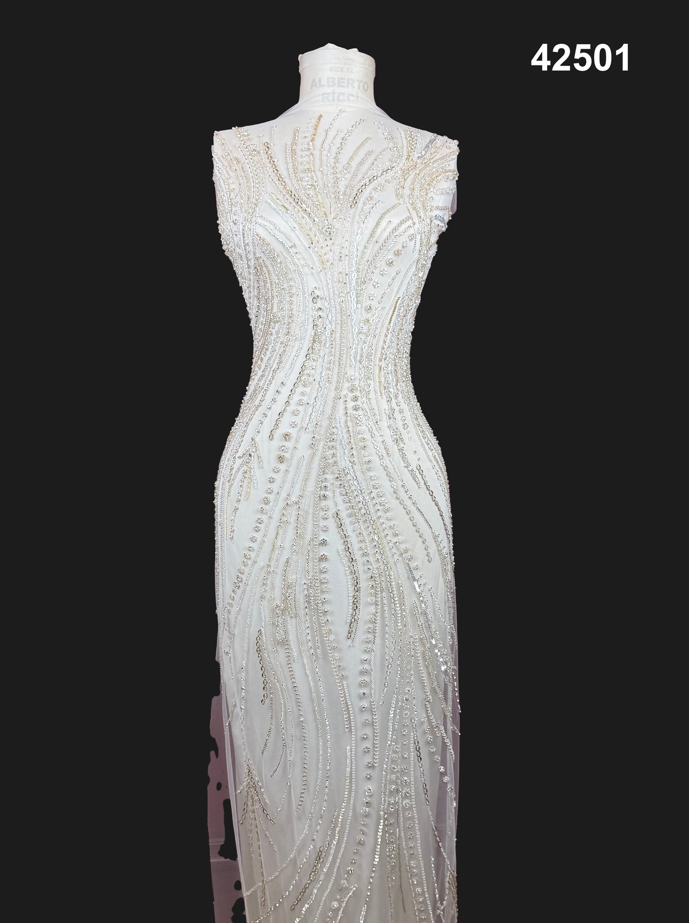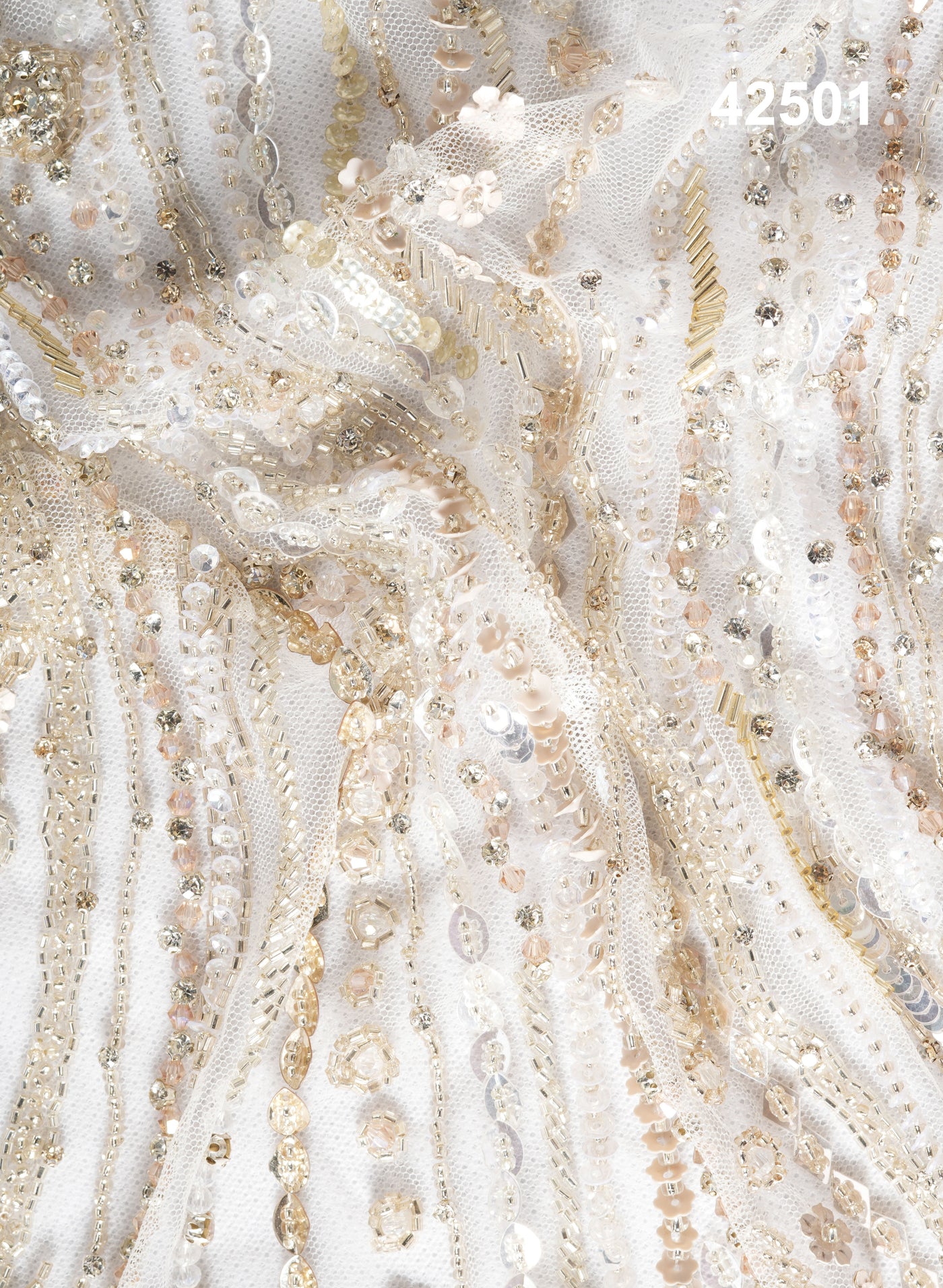 #42501 Ivory & Silver Radiant Bridal Hand-Beaded Fabric – Luxury Textile for Bridal Couture & Bespoke Gowns