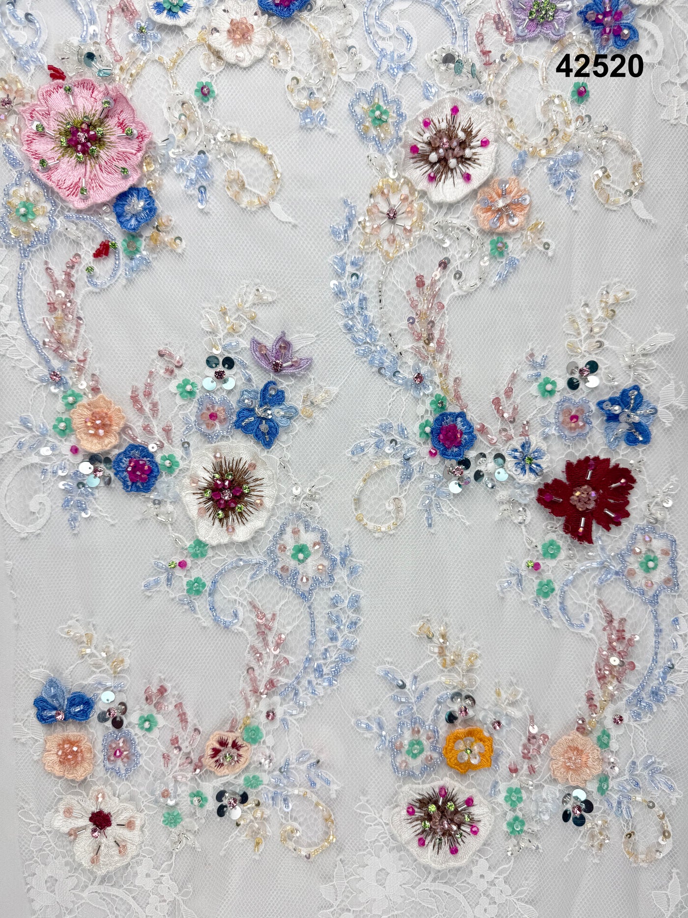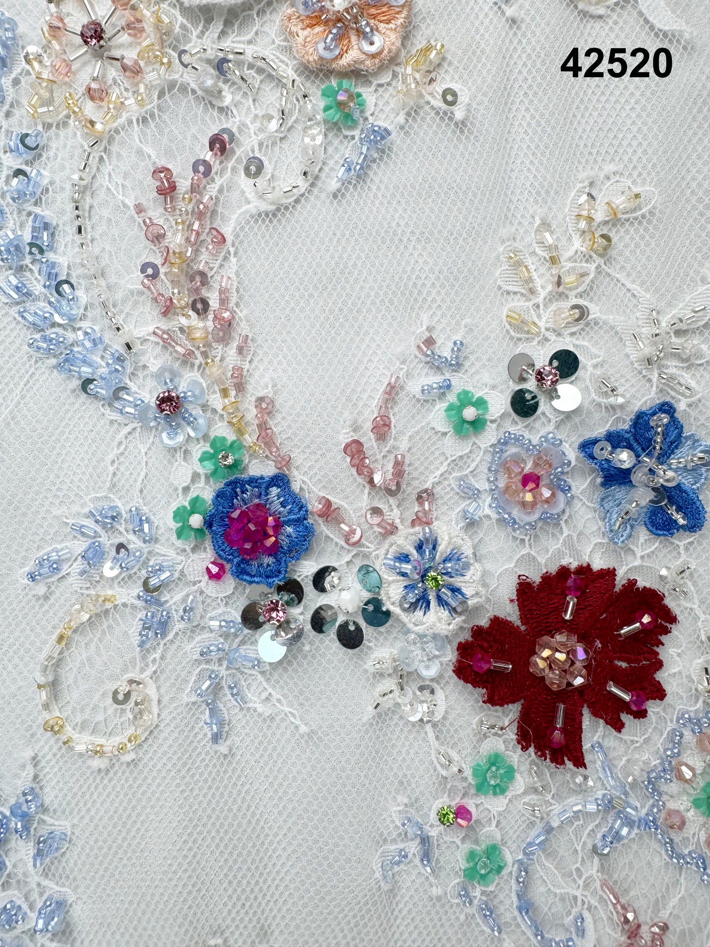 #42520 Multicolor Floral Hand-Beaded Bridal Fabric – Couture Embroidered Net