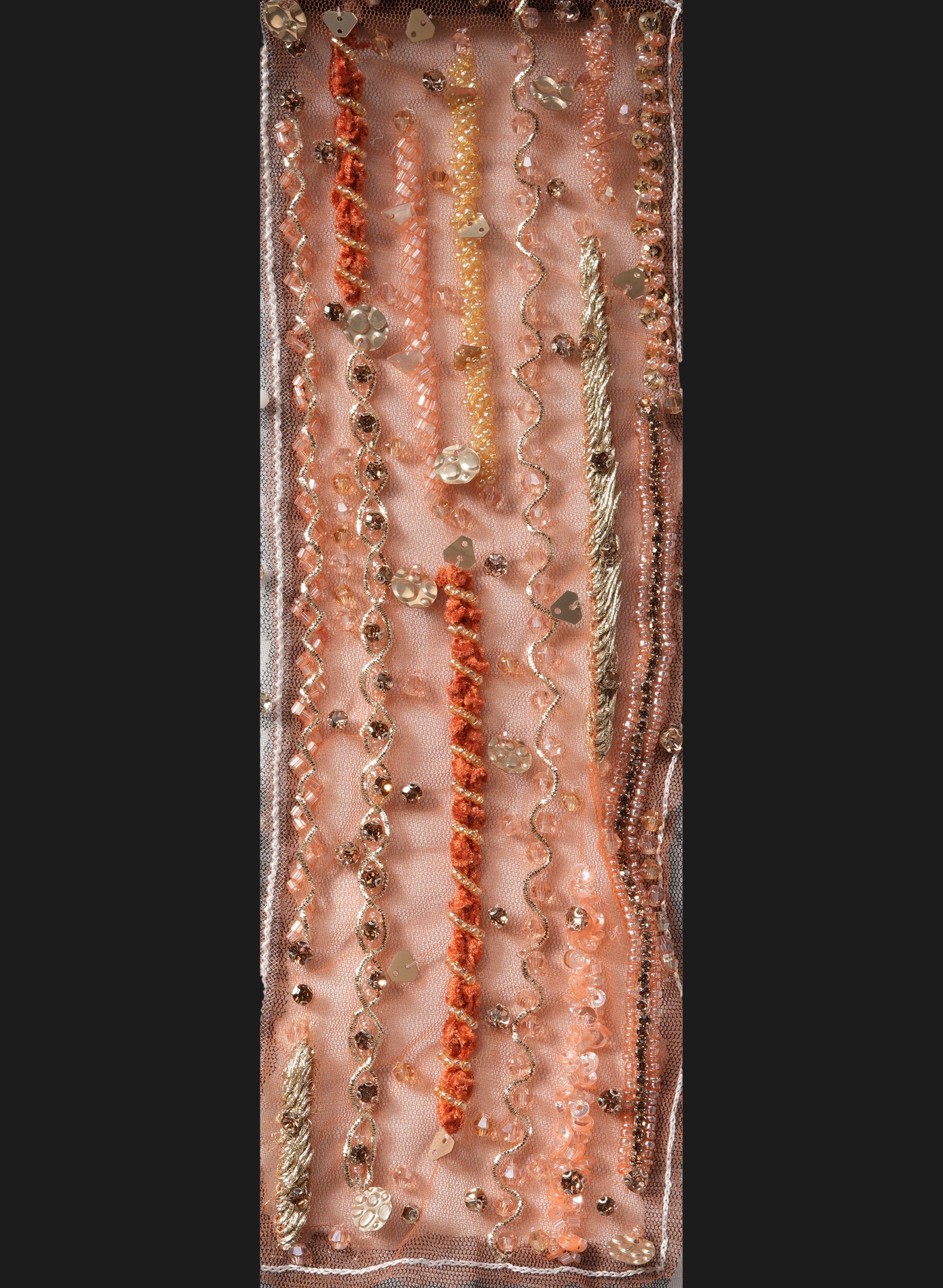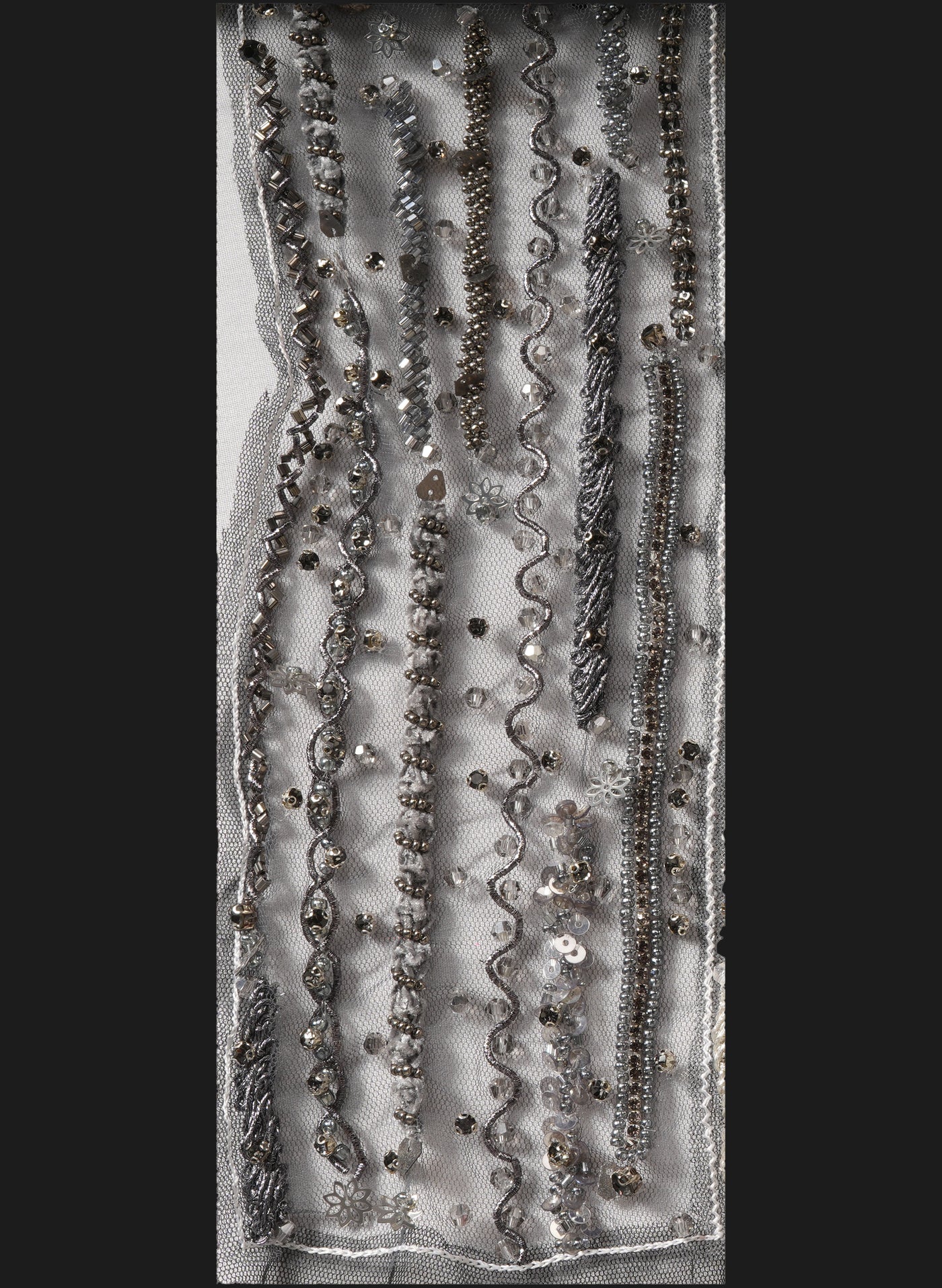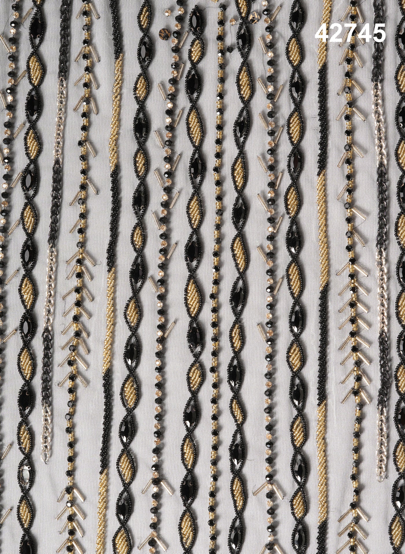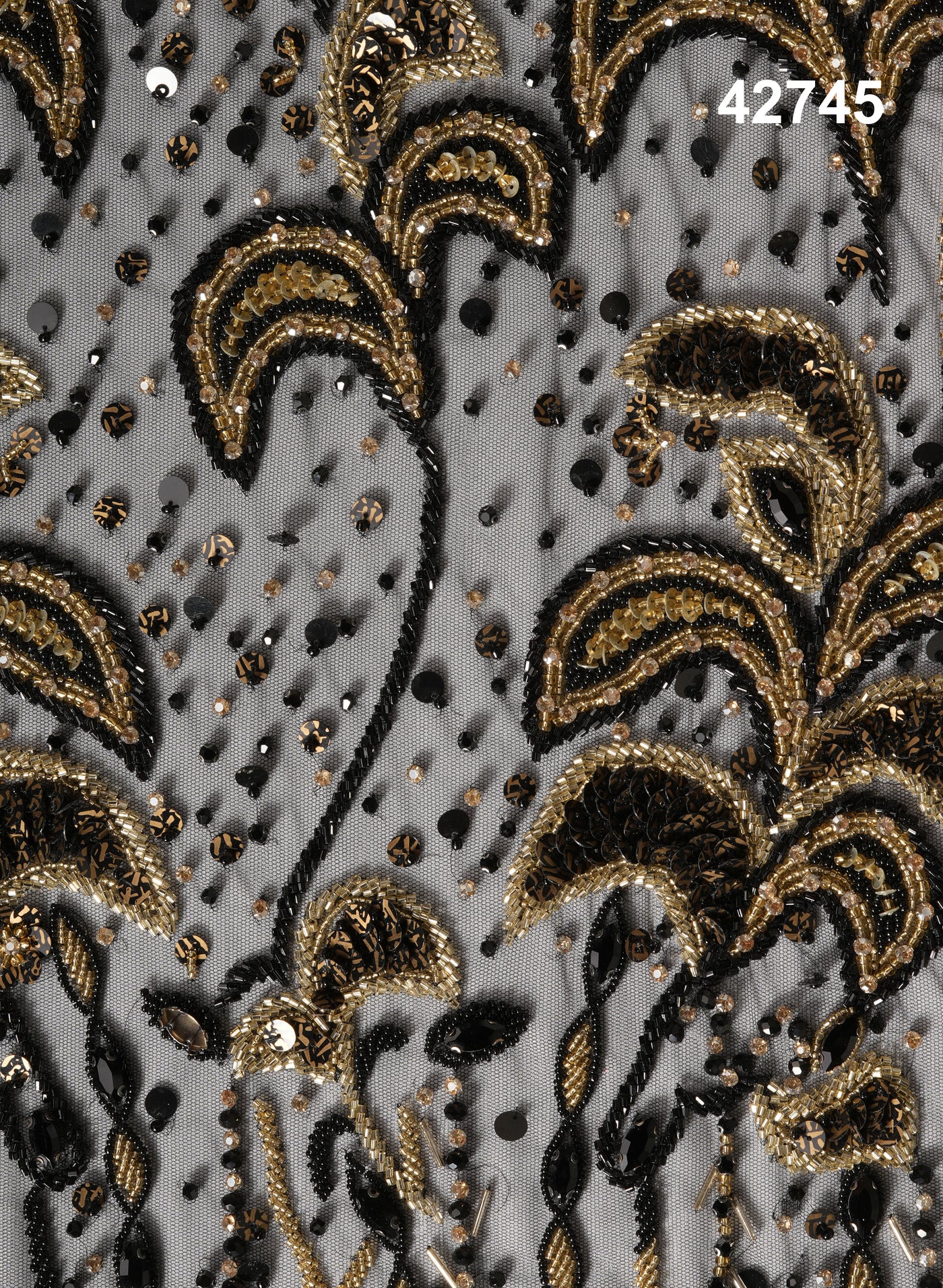 Customization options for embellishment density, motif placement, pattern scaling, and multicolor shade variations are available upon request, making it an excellent choice for luxury designers and couture fashion houses.