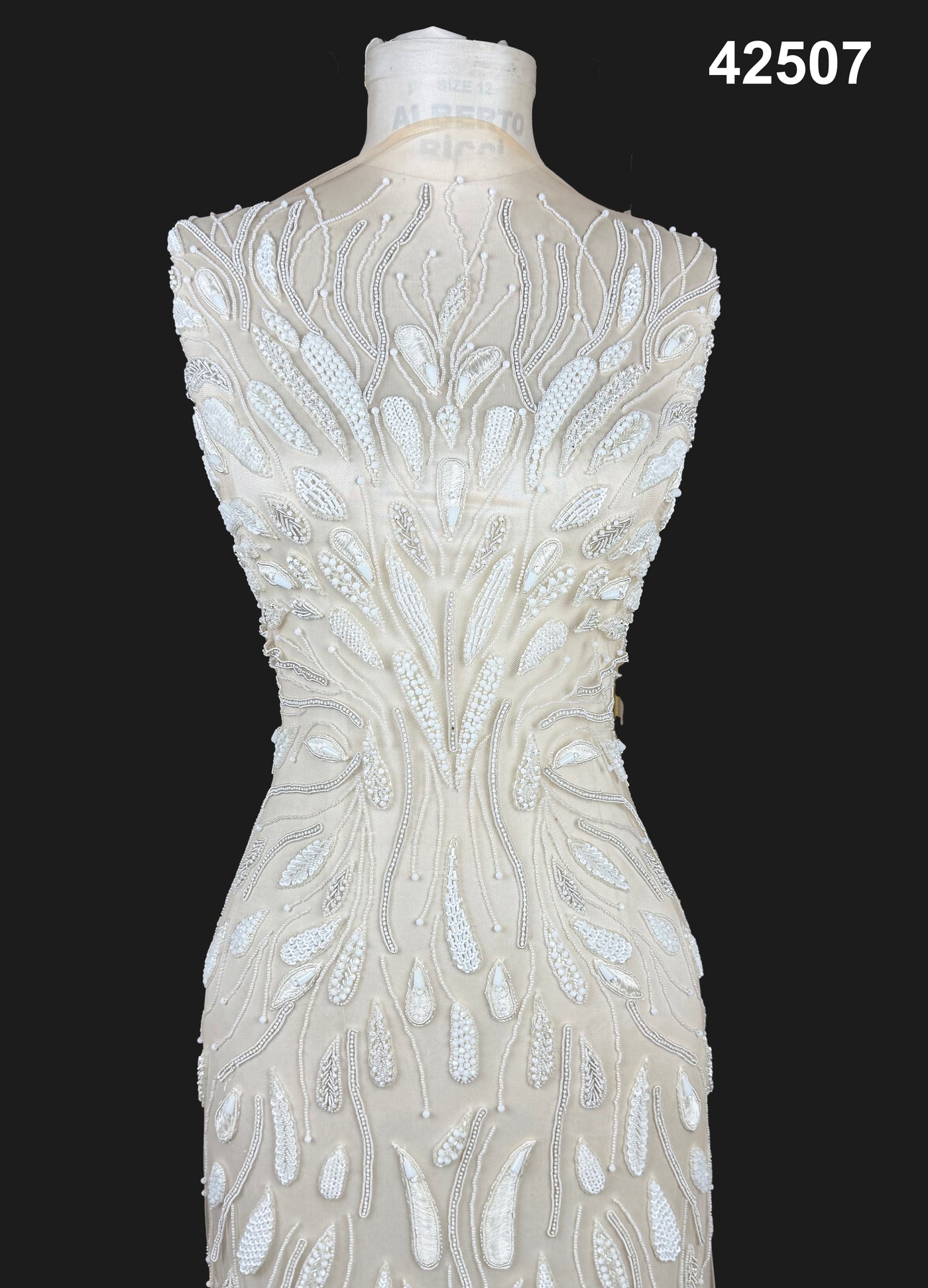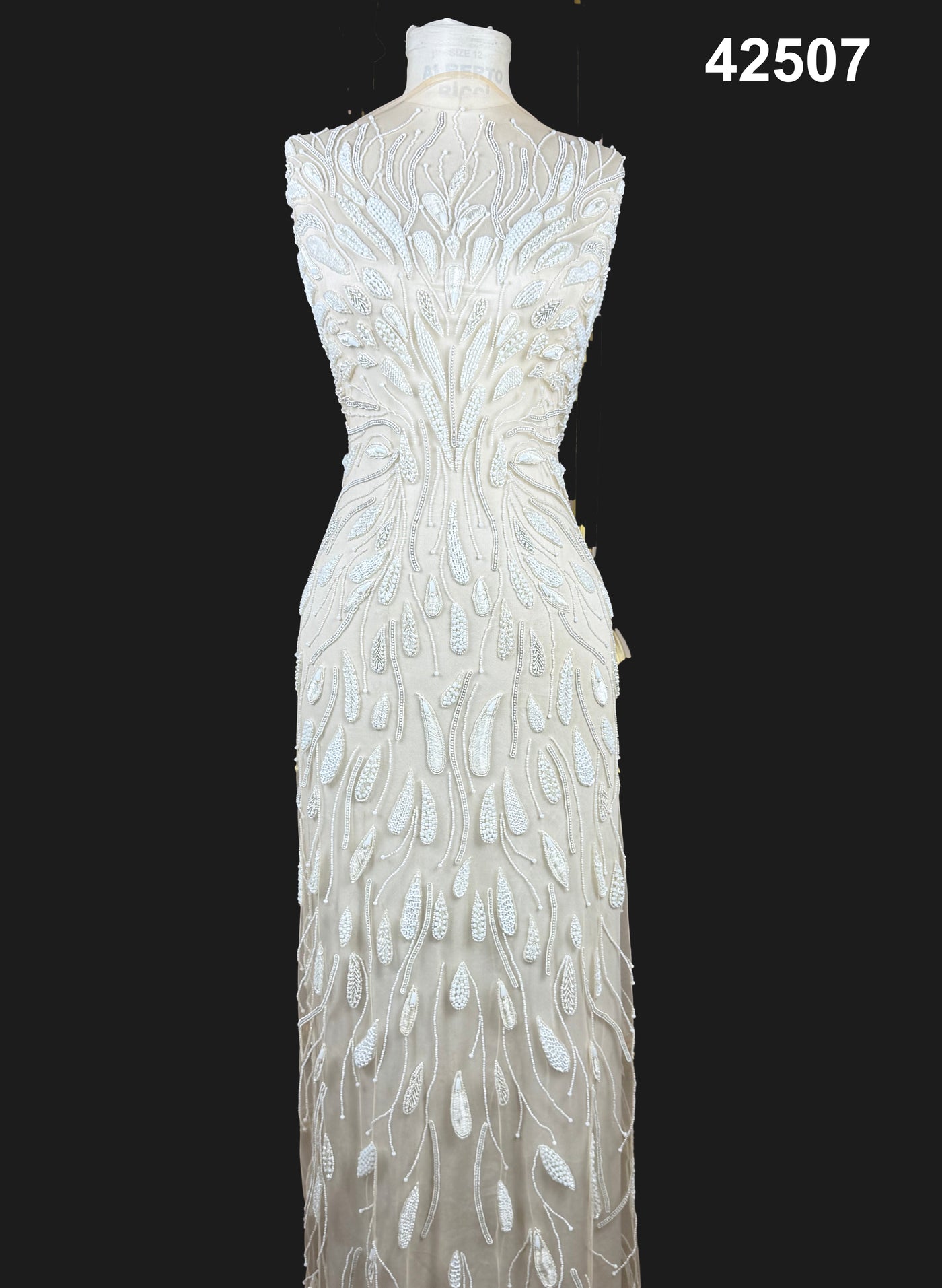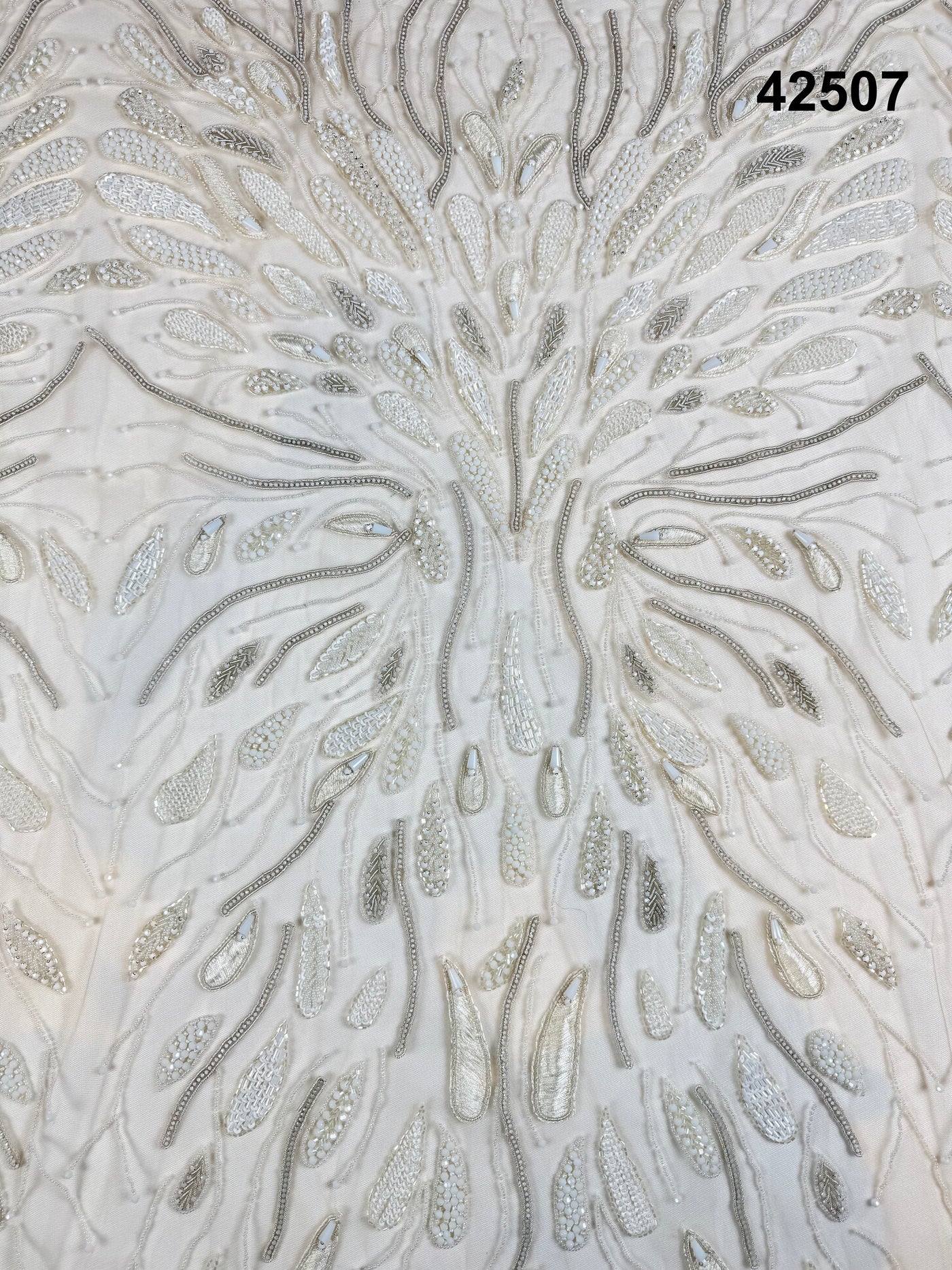 #42507 Ivory Silver Bridal Tree-of-Life Hand-Beaded Fabric – Luxury Couture Textile