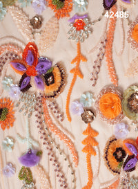#42485 Artistic Multicolor Abstract Hand-Beaded Fabric with Dimensional Beads & Textural Appliqués – Couture-Grade Textile for Designer Gowns, High-Fashion Ensembles & Custom Luxury Creations