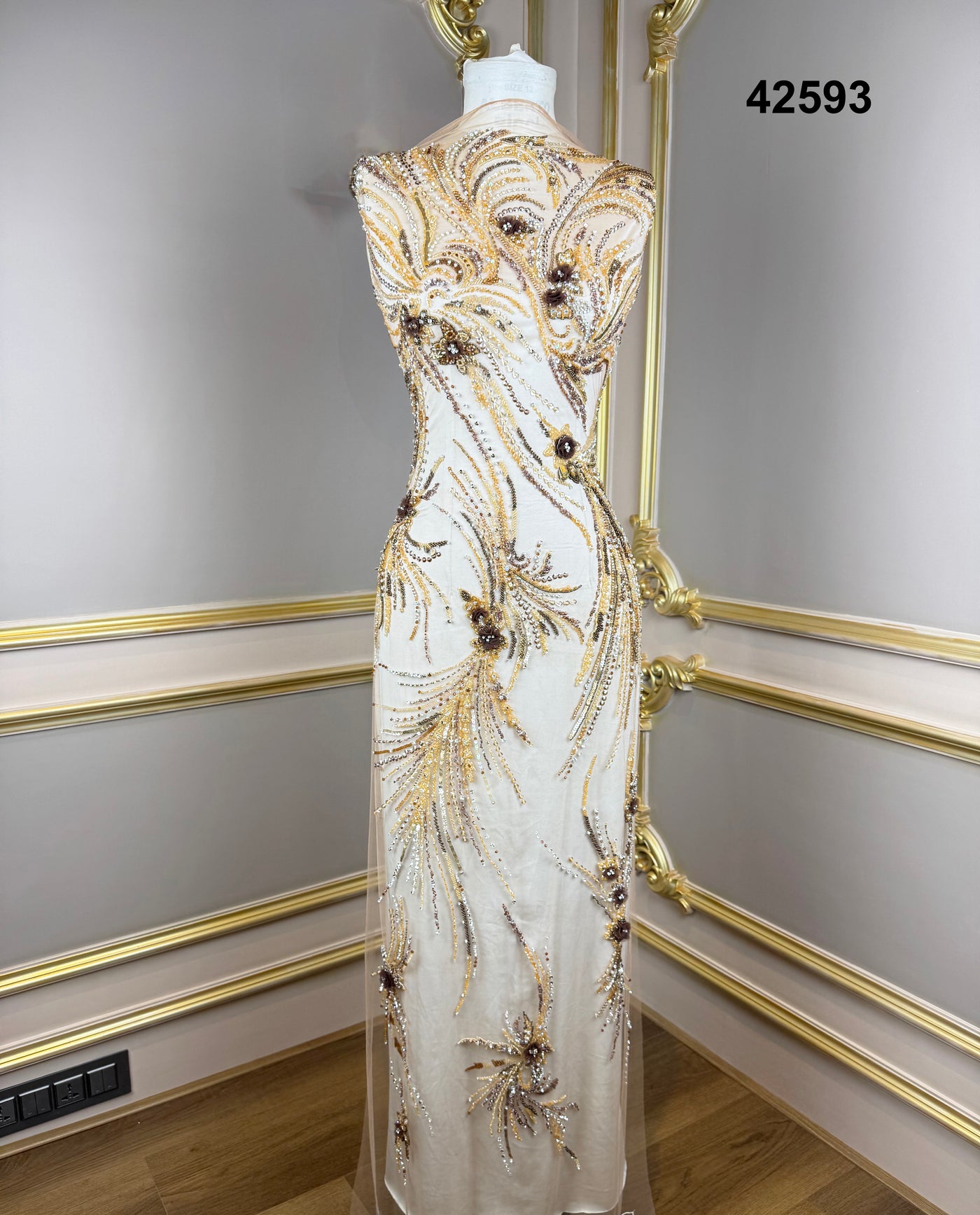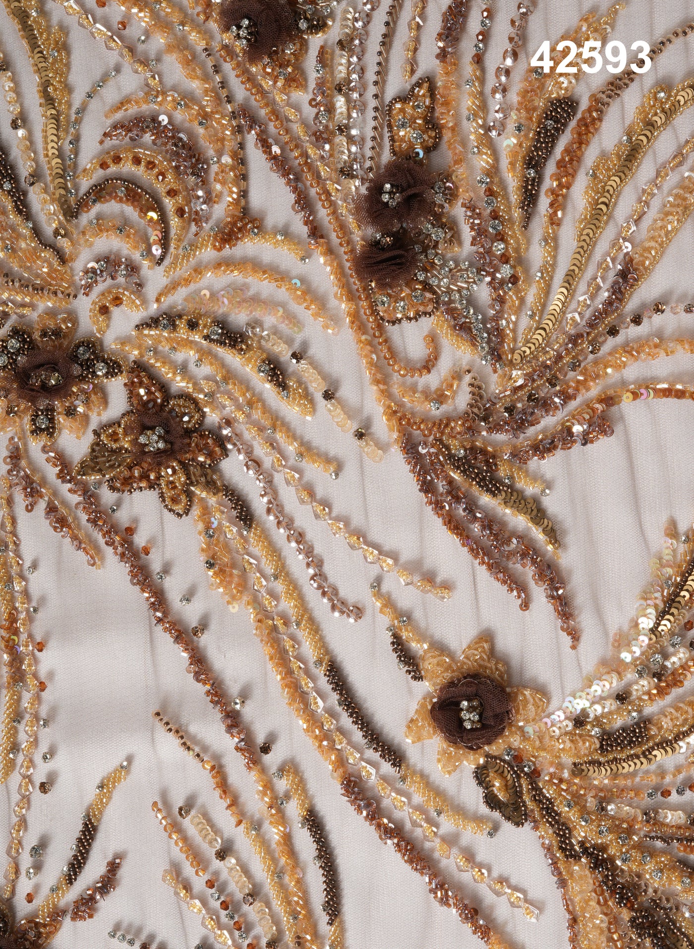 #42593 Antique Gold Floral Burst Hand-Beaded Fabric – Luxury Couture Net
