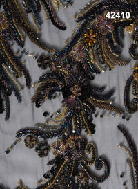 #42410 Vibrant Floral Abstract Fabric – Exquisitely Beaded with Exotic Beads, Delicate Sequins, Rhinestones, and Intricate Thread Work for Fashion