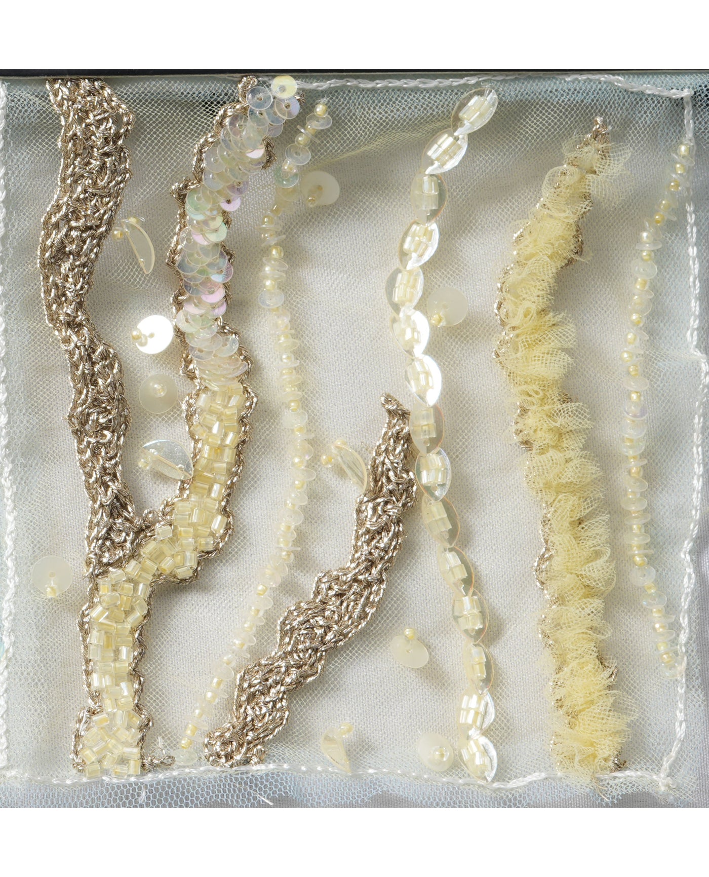 #42418 Stunning Hand-Beaded Fabric with Abstract Design, Embellished with Sequins, Beads, Rhinestones, and Applique for a Luxurious Look