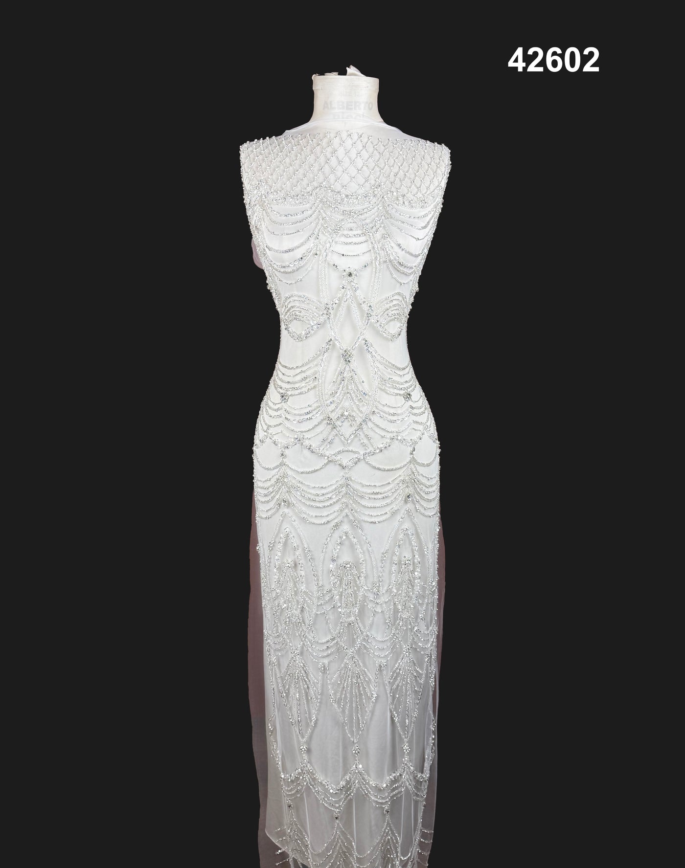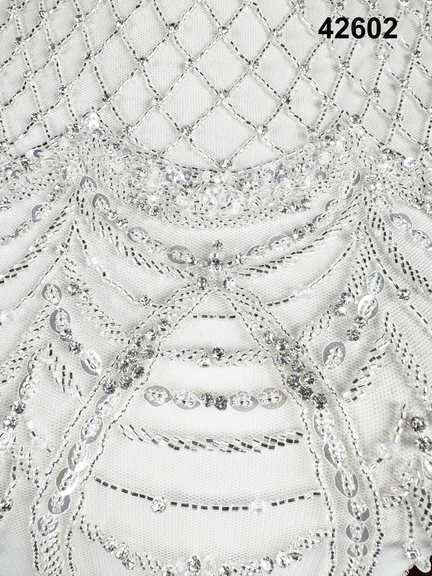 #42602 Ivory Crystal Lattice Hand-Beaded Bridal Net Fabric – Elegant Couture Embroidery