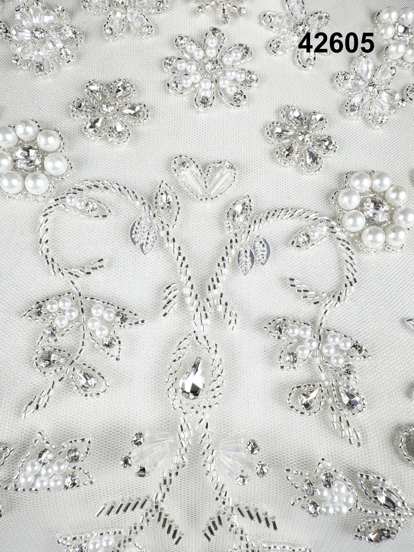 42605 Ivory Pearl & Crystal Floral Hand-Beaded Bridal Net Fabric – Timeless Couture Elegance