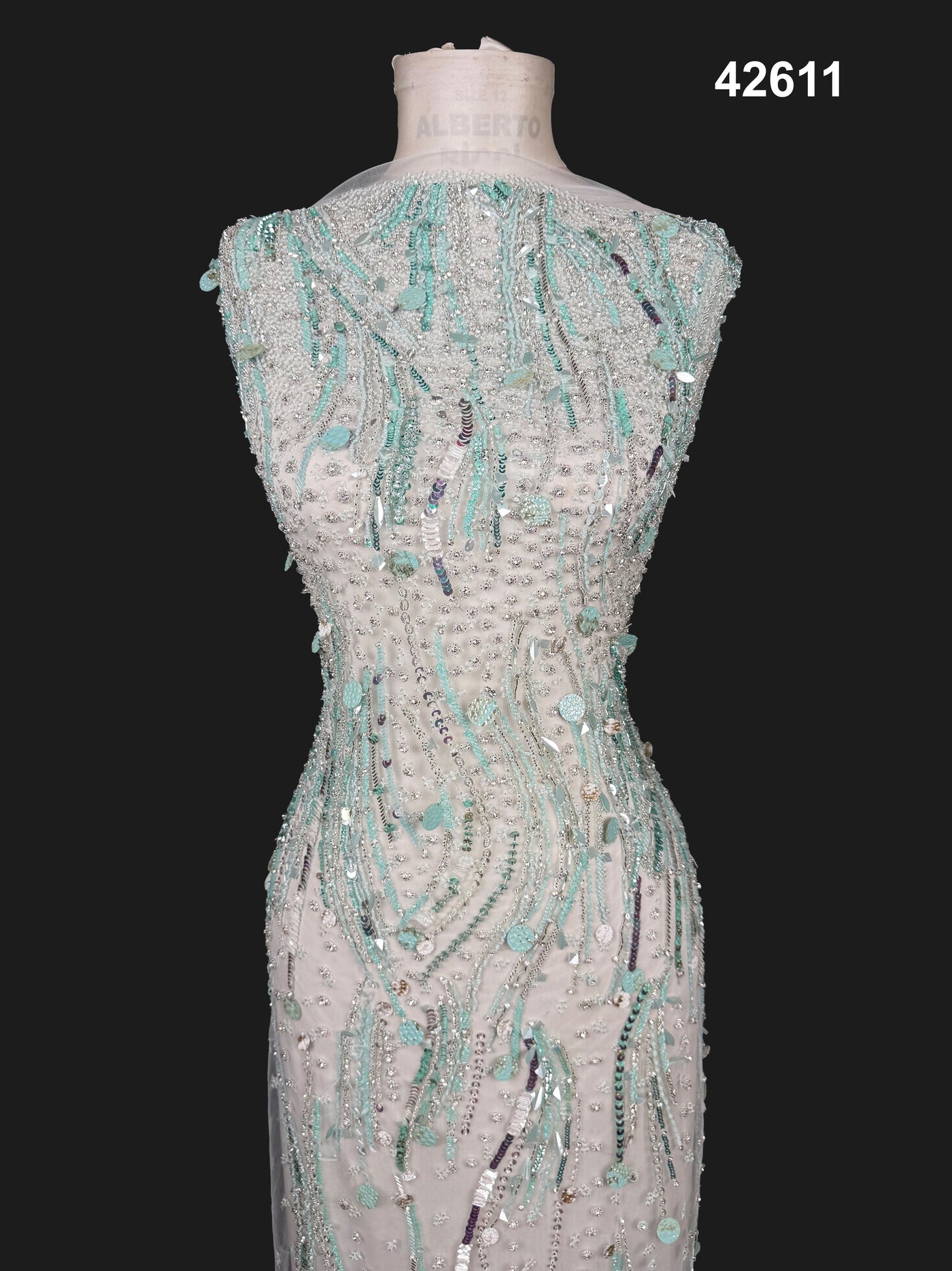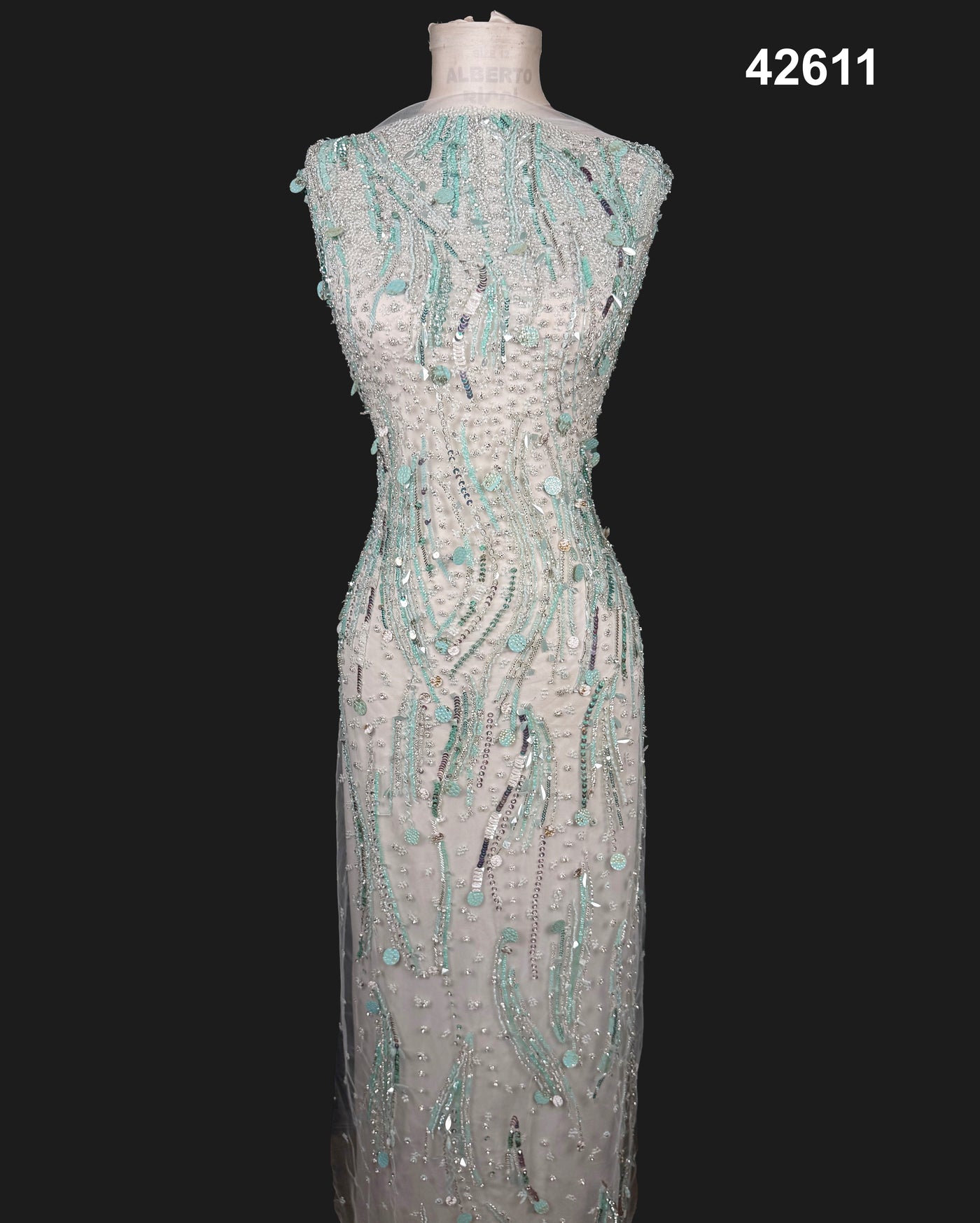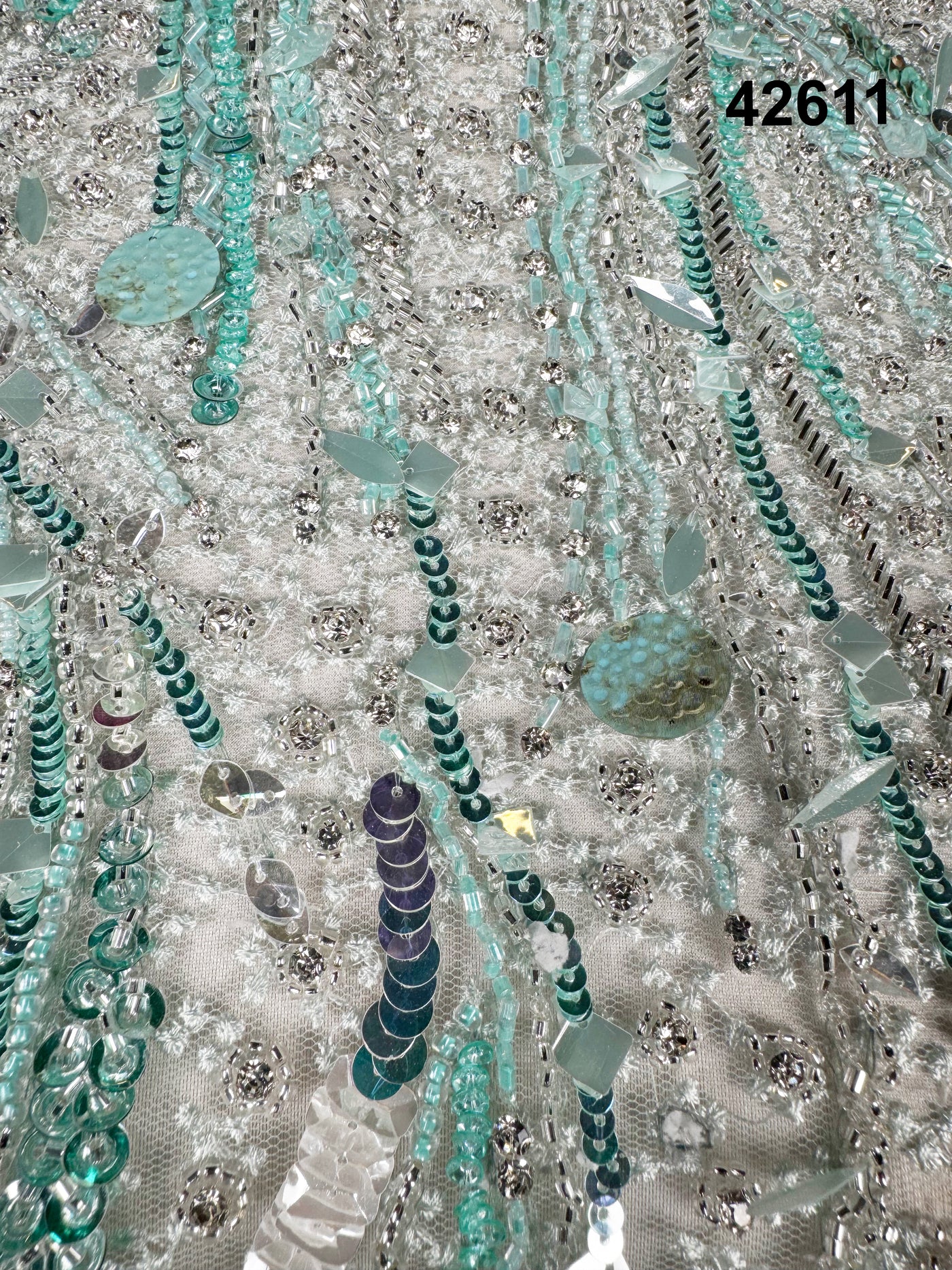 #42611 Aqua Crystal & Sequin Abstract Hand-Embellished Net Fabric – Contemporary Couture Luxe