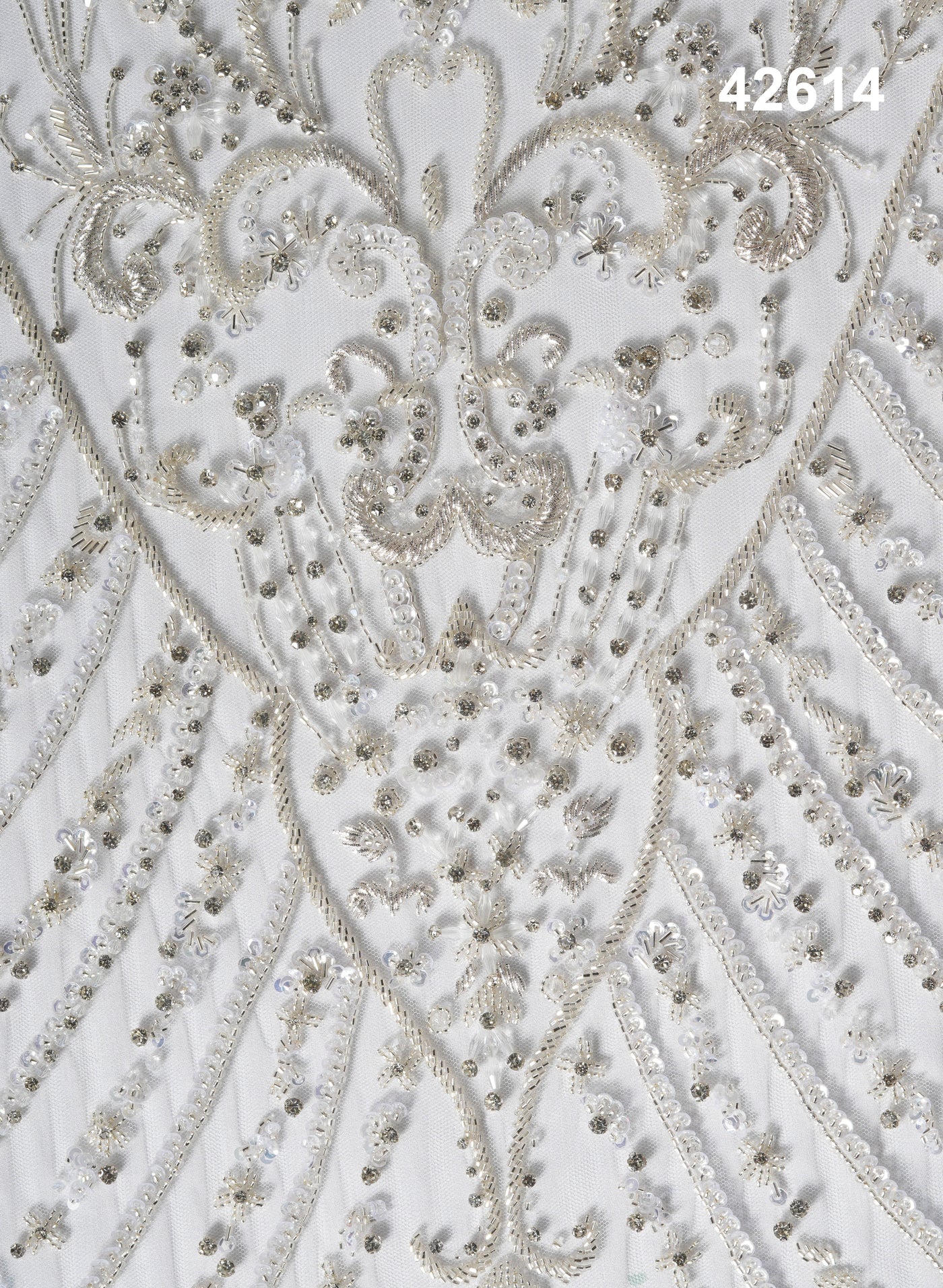 Perfect for bridal gowns, reception wear, evening dresses, couture lehengas, statement overlays, and luxury occasion ensembles, this fabric is designed for high-fashion and bespoke creations. Each embellishment is meticulously hand-embroidered, ensuring premium craftsmanship and exclusivity.