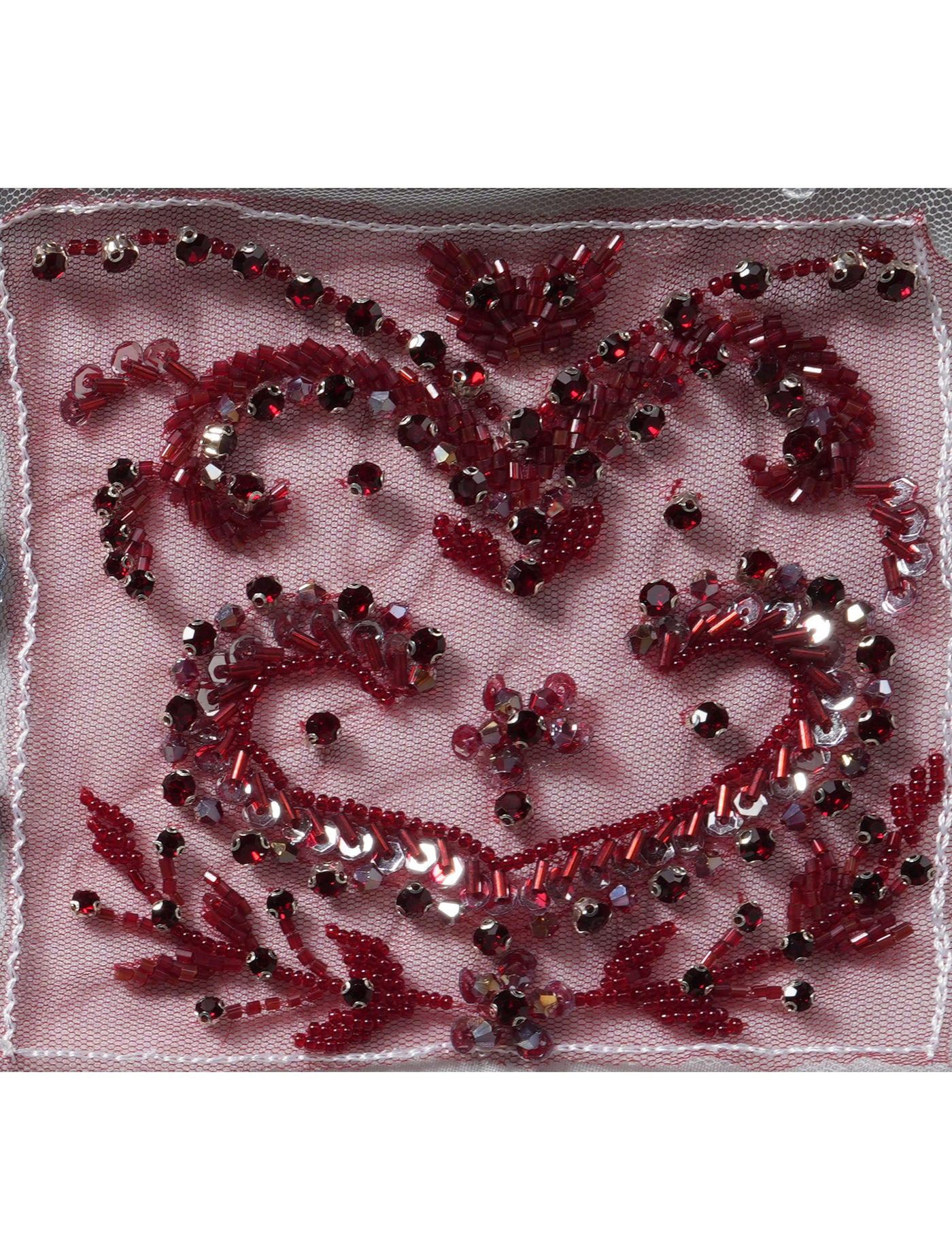 Illuminate your couture creations with our Multicolor Crystal & Sequin Burst Hand-Embellished Net Fabric, intricately handcrafted on a soft ivory net base. This exquisite design features dynamic burst and scroll motifs, beautifully adorned with shimmering sequins, metallic bugle beads, seed beads, faceted crystals, and multicolor reflective stones that catch the light from every angle.