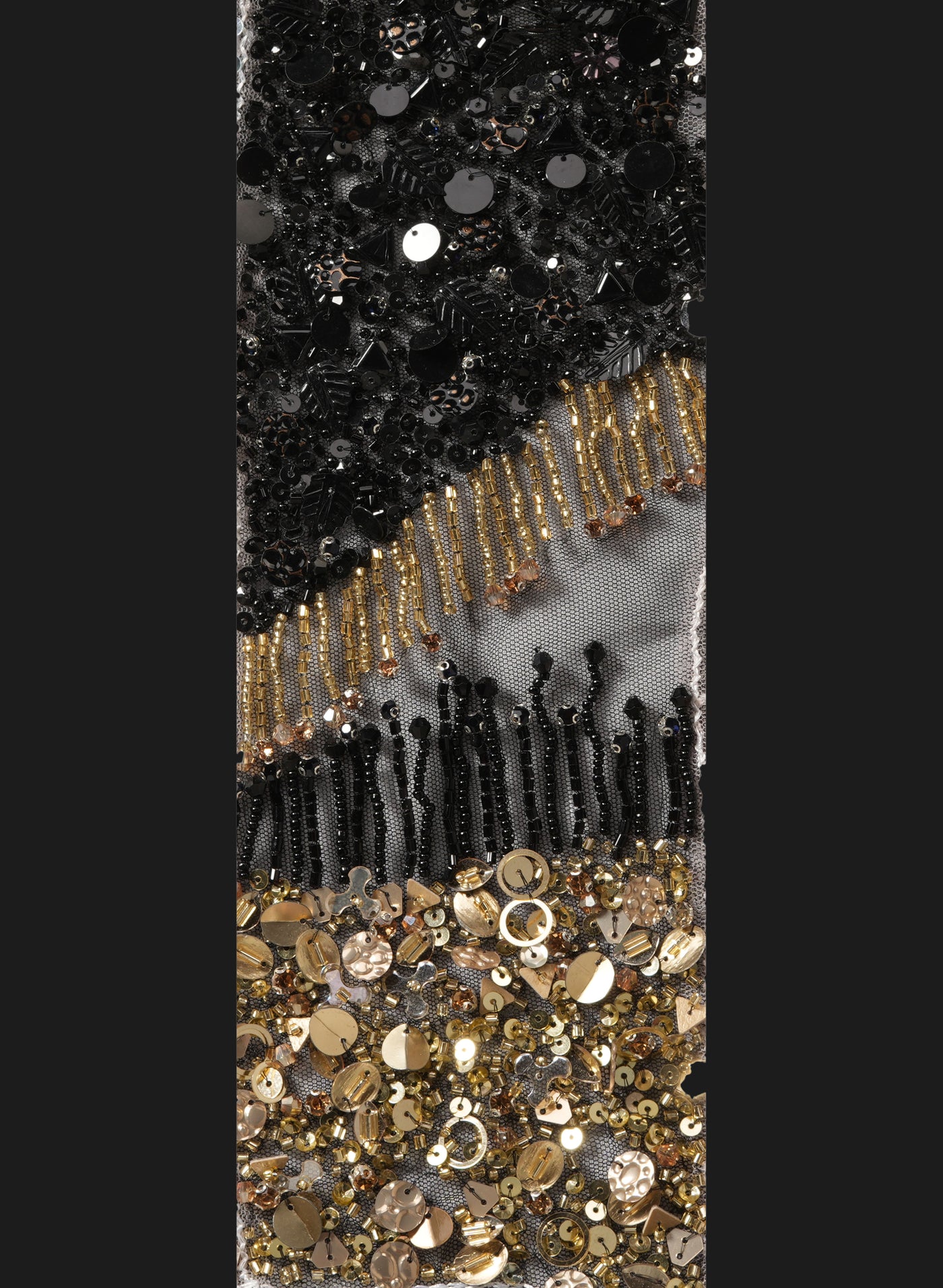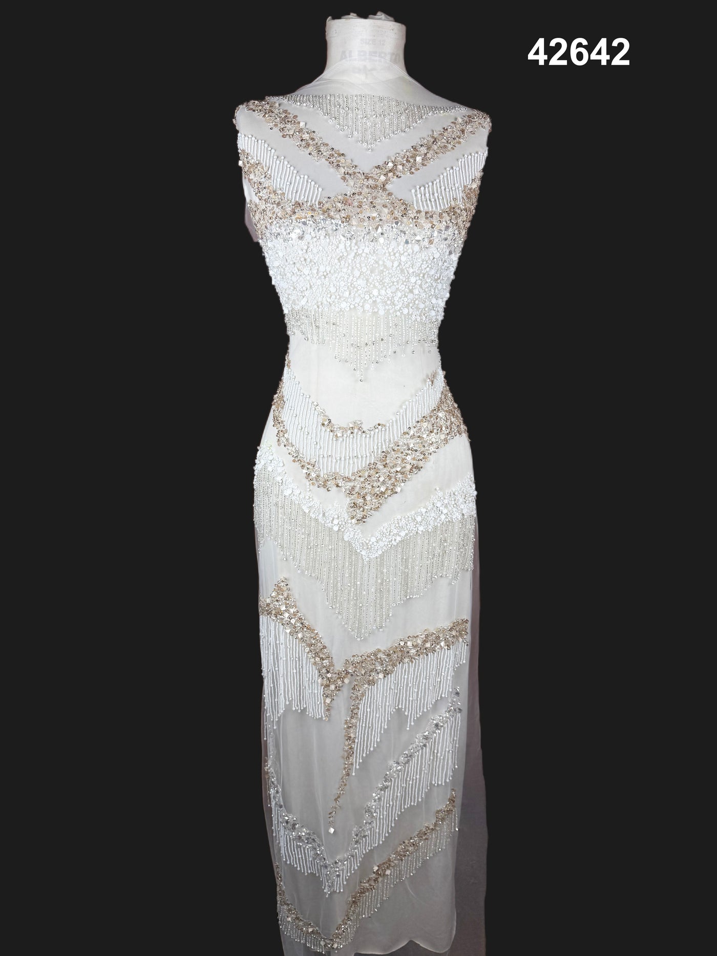 Ideal for luxury evening gowns, couture lehengas, reception ensembles, cocktail dresses, overlays, statement panels, and bespoke creations, this fabric offers an elegant yet contemporary aesthetic. Each embellishment is carefully hand-applied, ensuring superior craftsmanship and exclusivity.