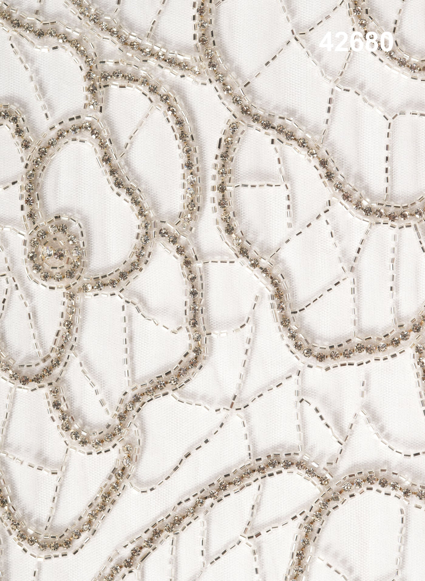 #42680 Ivory Crystal Vine Floral Hand-Beaded Bridal Net Fabric – Luxe Couture Radiance