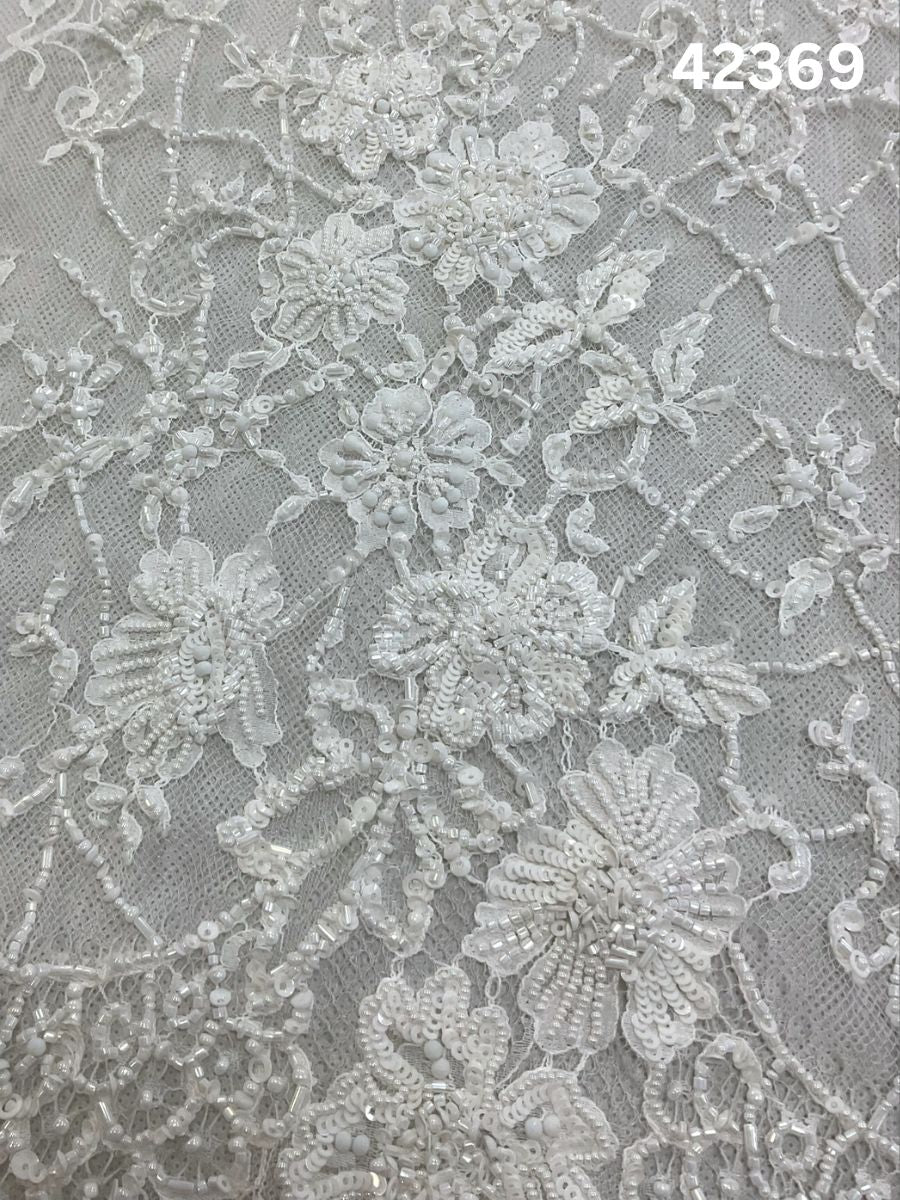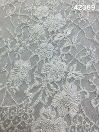 #42369 Ivory Hand-Beaded Floral Lace with Artisanal Beads on Delicate Tulle
